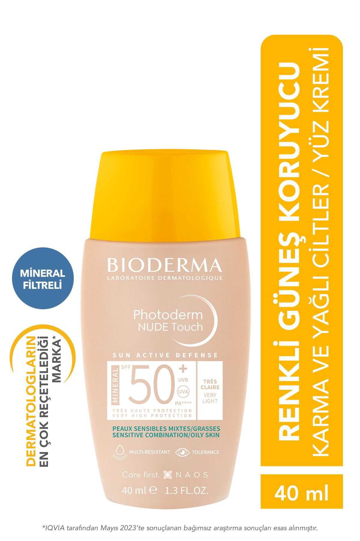 Bioderma Photoderm Nude Touch SPF50+ Very Light Karma Yağlı Ciltler Kapatıcı Etkili Renkli Güneş Kremi 40 ml