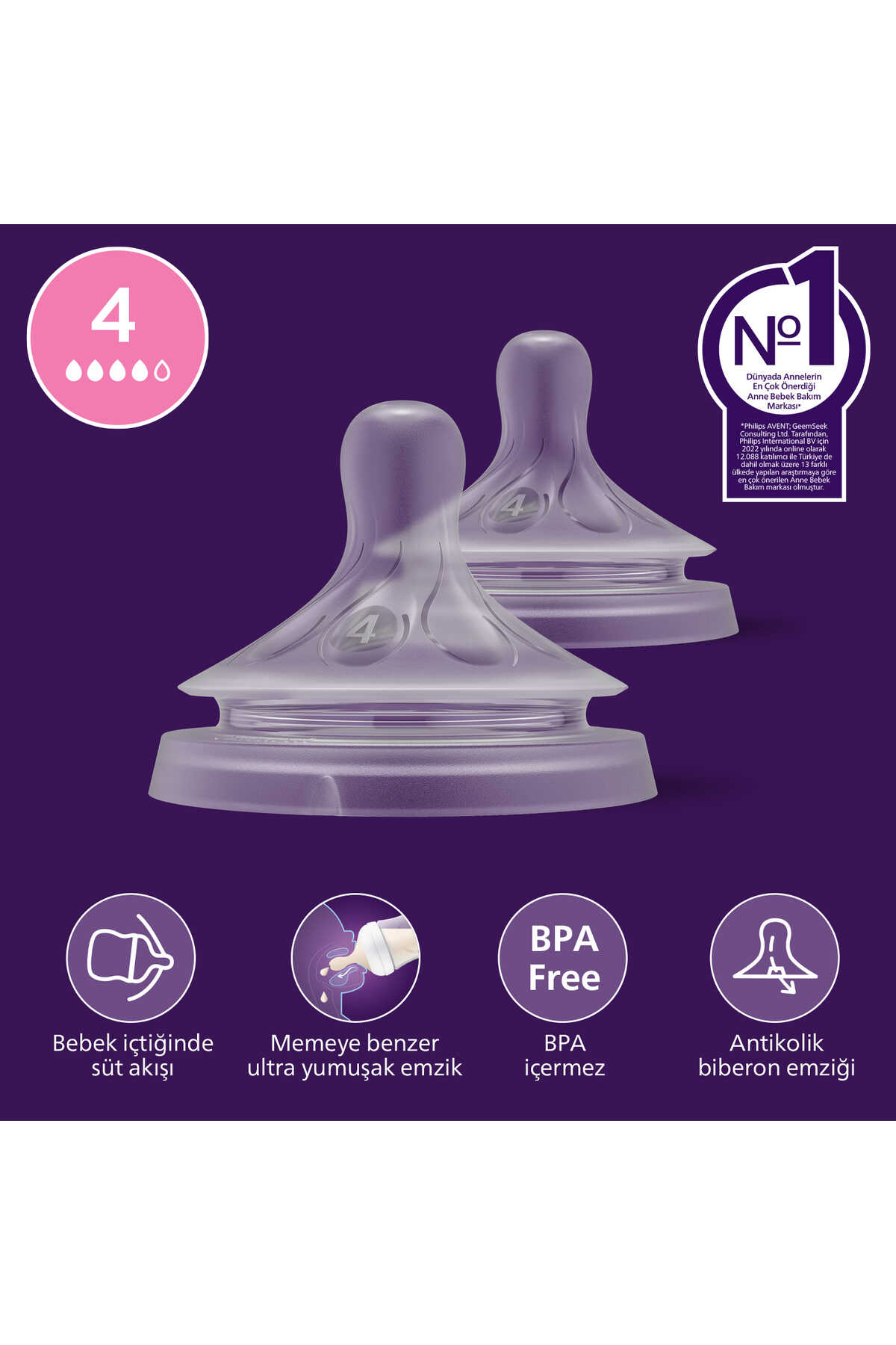 Doğal Tepkili 2'li Biberon Emziği, 4 Numara, SCY964/02