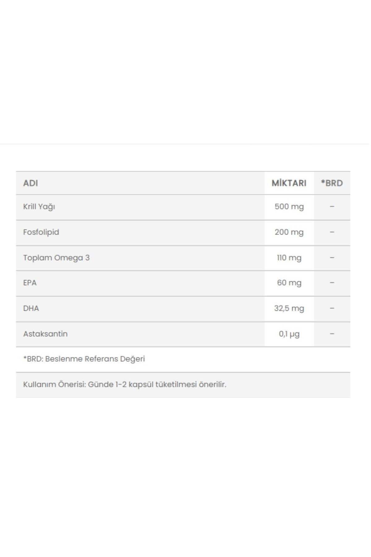 | Krill Yağı | 500 mg | – |