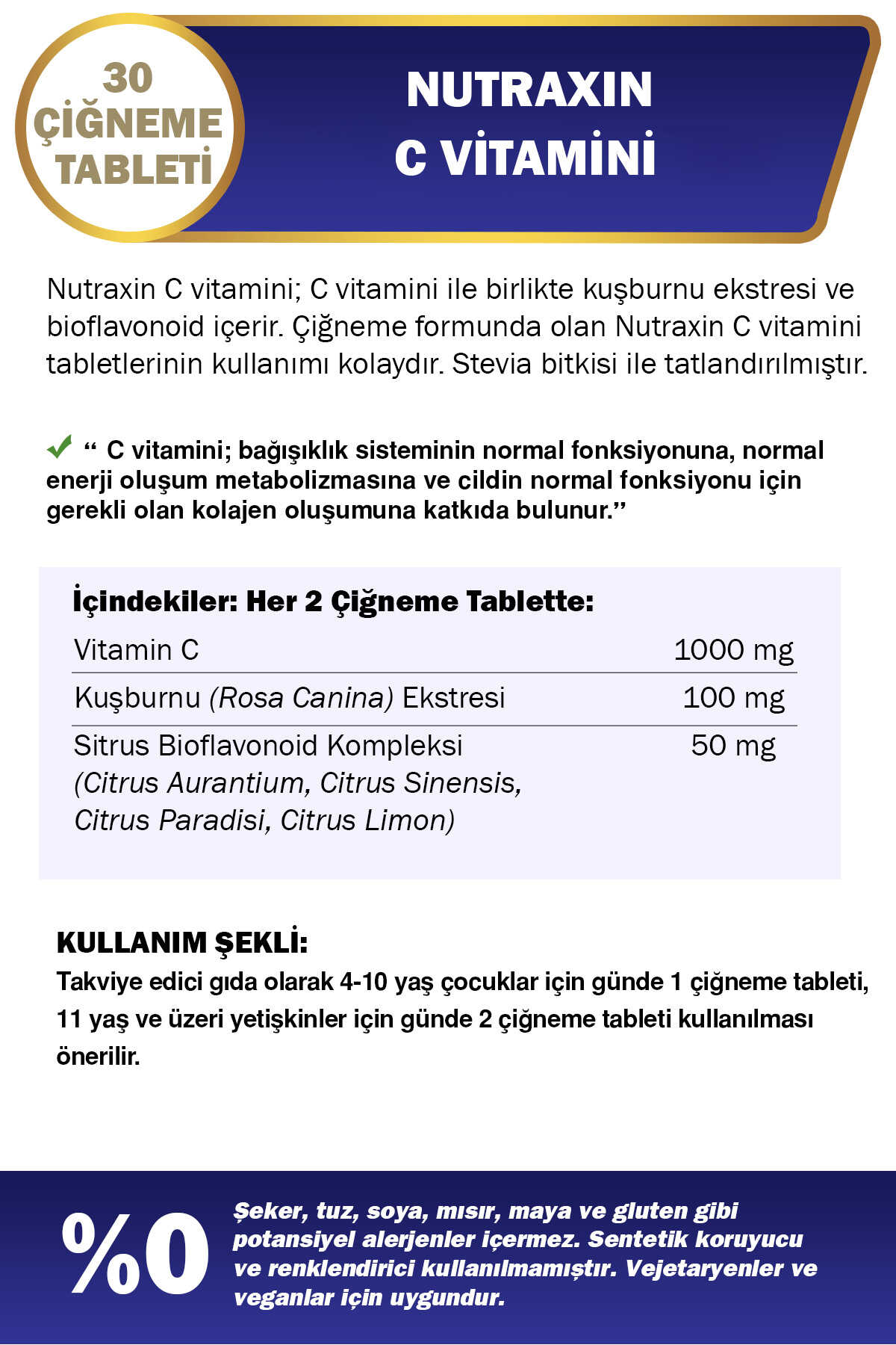 Nutraxin C Vitamini 500 Mg 30 Adet Çiğneme Tableti